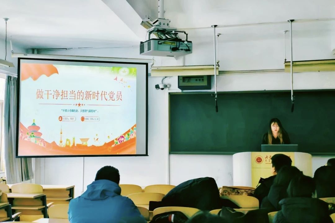 杨妍同志围绕“做新时代忠诚、干净、担当的党员”,带领支部同志深入学习。分别从坚持忠诚第一,用“守心”塑“正气”;坚持本色固本,用“严纪”厚“底气”;坚持事业至上,用“担当”练“硬气”三个方面进行讲解。忠诚、干净、担当,体现了共产党人的政治立场、价值追求和道德风范,体现了共产党员做人做事的高度统一,为新时代青年党员指明了方向。我们要以高度的政治责任感和历史使命感,不忘初心、牢记使命,自觉加满油、把稳舵、鼓足劲,奋楫前进。
