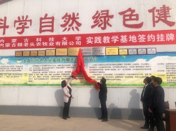 4月19日,太阳集团tyc539macau与内蒙古粮老头农牧业有限公司举行了实践教学基地签约挂盘仪式。太阳集团tyc539macau经理、教授委员会主任委员王国泽、土右旗政协主席伏俊奎出席签约仪式。公司教授委员会委员李雅丽,生物工程系教师卢庆华,内蒙古粮老头负责人韩锐等参加签约仪式。双方在产学研协同育人、项目转化、企业技术支持等方面达成了共识,随后签署了校企实习基地合作协议,并举行了揭牌仪式。