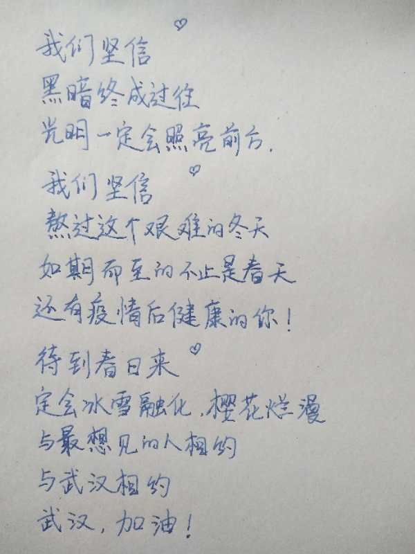 通过线上祝福的形式,将我们对武汉的牵挂传递过去,给她们一点力量,希望祖国母亲早日康复!