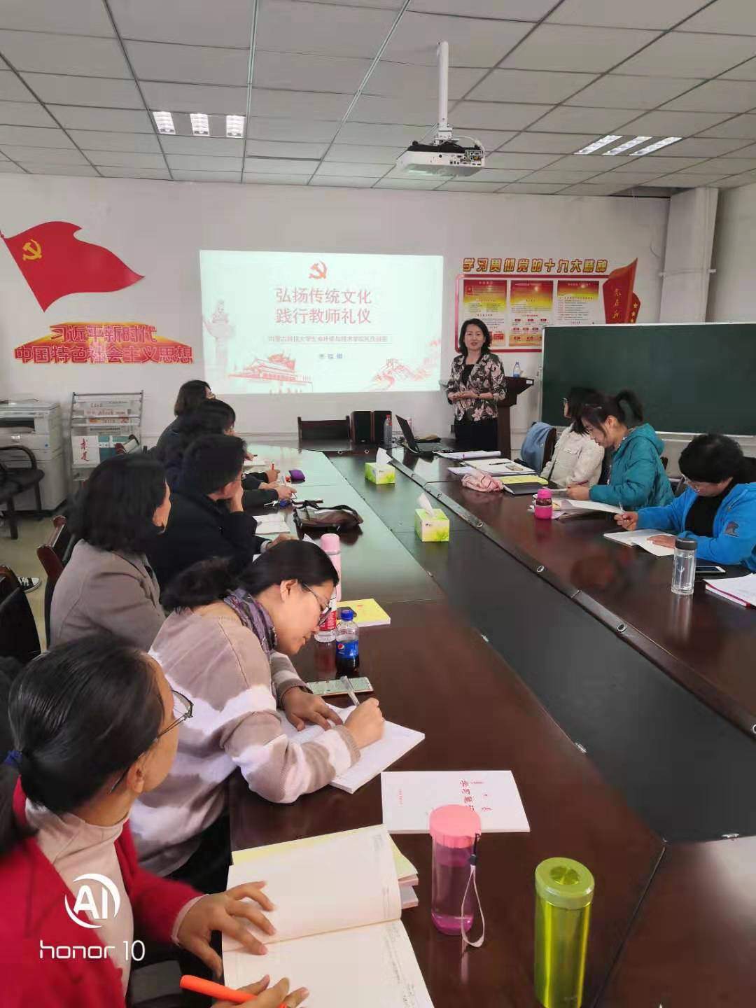 2019年10月24日下午,太阳集团tyc539macau邀请党政办公室李瑞卿老师为全体教工党员做了“不忘初心、牢记使命”主题教育专题讲座,讲座题目为《弘扬传统文化、践行教师礼仪》。