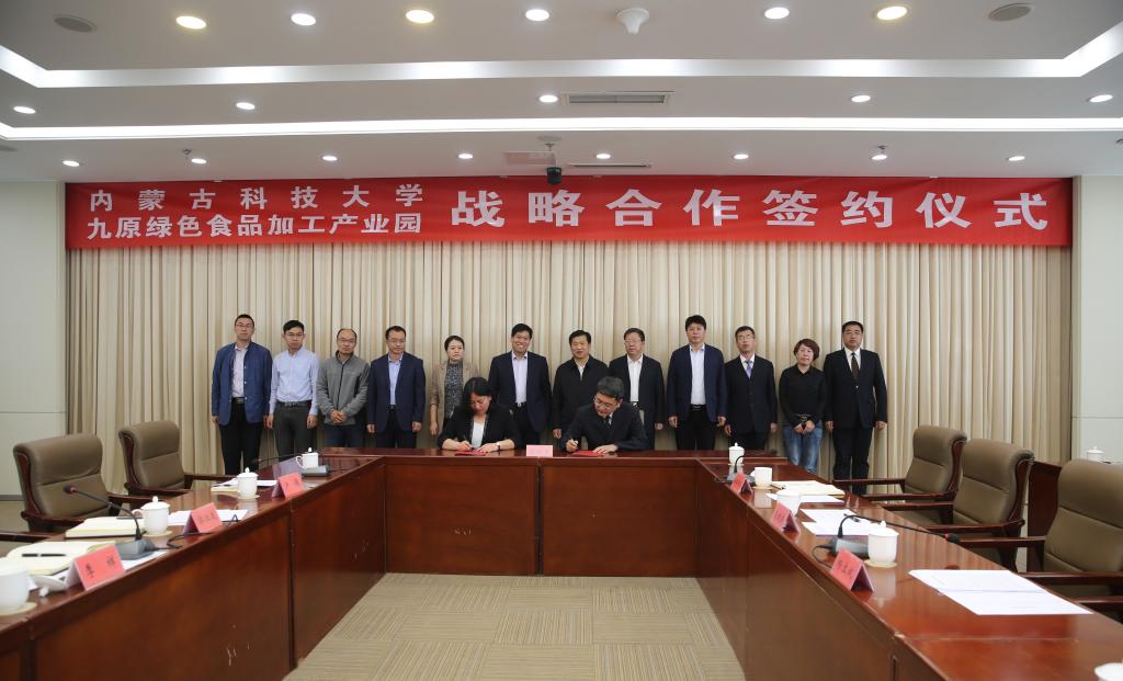 九原绿色食品加工园区是集食品加工、商务贸易、物流配送、科技教育、产业旅游等功能于一体的绿色生态食品产业园,与园区建立良好的合作关系,对于公司产学研转化和人才质量培养提升具有重要意义。本着“优势互补、重点推进、互利共赢”的原则,校区双方将建立长期稳定的关系,发挥各自优势,在科技服务、人才培养、产学研合作、教育咨询等方面开展合作。