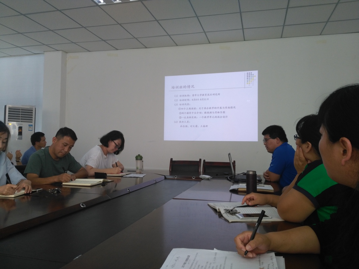 8月31日下午,公司在腾飞楼D410召开混合式课程建设交流座谈会,由杜志强教授主讲,全体专任教师参加会议,会议由教授委员会主任委员王国泽主持。