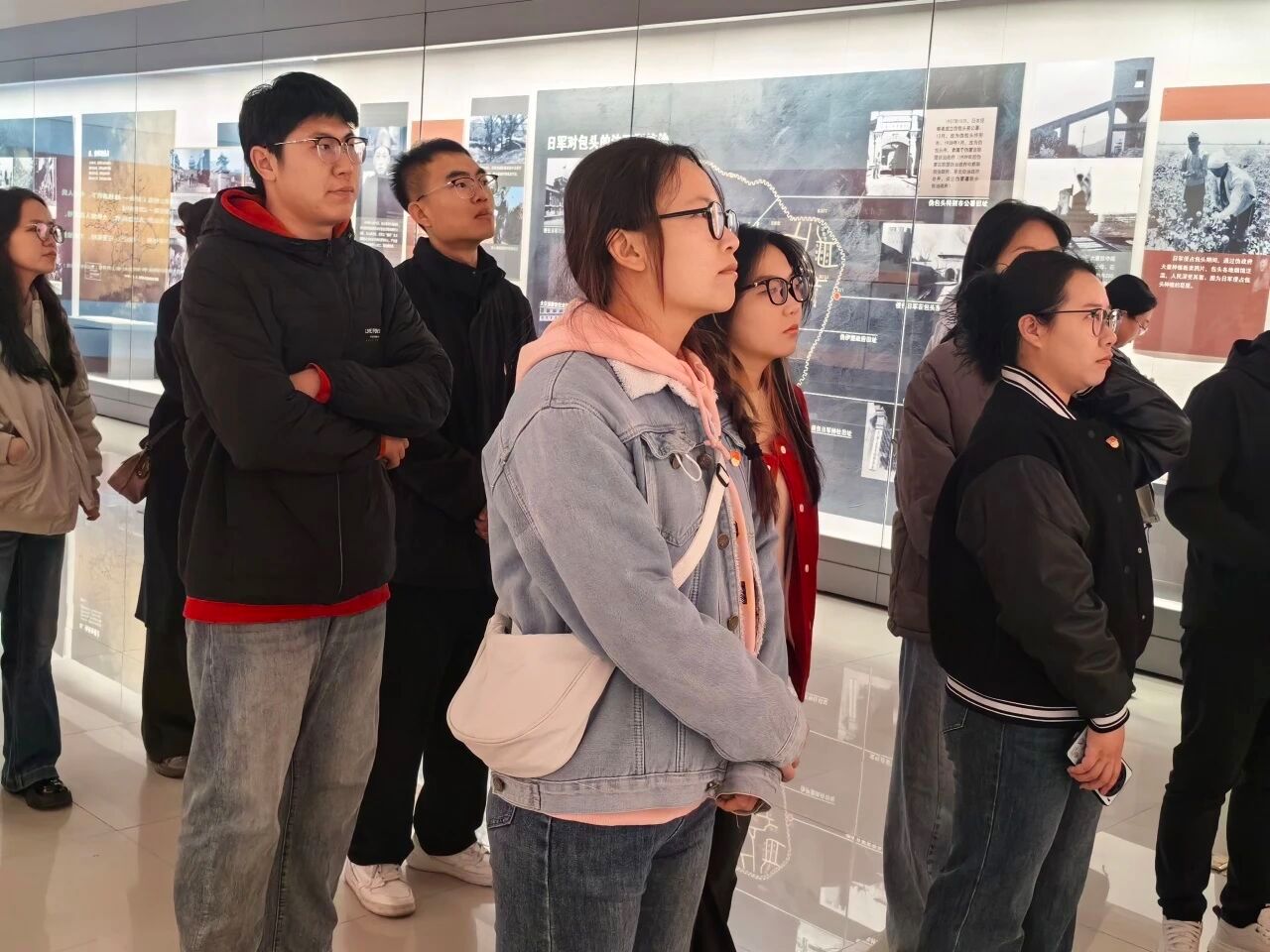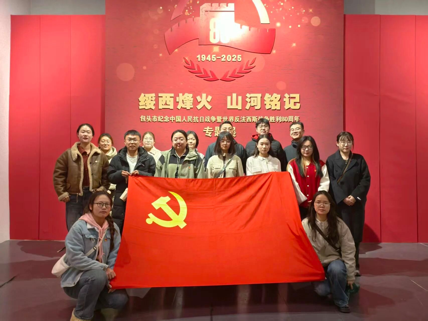 第一站抵达包头市博物馆,在中国人民抗日战争暨世界反法西斯战争胜利80周年之际,支部党员共同在这里重温了那段峥嵘岁月,铭记来时路“处心积虑 罪恶滔天”的侵略者的残暴行径;回望顽强抵抗时“艰苦卓绝 中流砥柱”下中国共产党的核心引领;振奋于“众志成城 共御外辱”的团结一心、共克时艰的壮丽篇章;激动于“浴血荣光 伟大胜利”时折射出的中华民族不屈不挠、最终赢得胜利的光辉时刻。馆藏中这些珍贵文物与历史影像资料,使大家深刻感受到中国共产党领导下的包头军民在绥西地区英勇抗击外侮、保家卫国的壮阔历程,也更加坚定了研究生党员努力学习、率先垂范、科研报国的初心