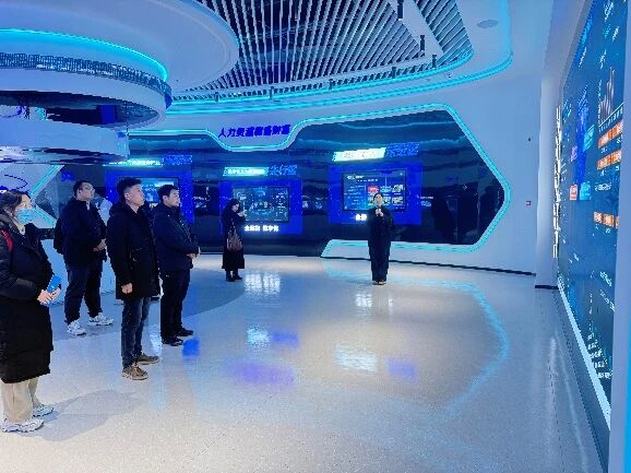 活动首站,支部一行抵达内蒙古云谷数字人力资源服务产业园,该园区是集人力资源服务与云计算基础设施于一体的综合性平台。在产业园工作人员的陪同下,团队走访了和林格尔云计算中心,并全面了解了该区域作为国家“东数西算”重要节点的战略定位、先进的数字基础设施集群以及入驻的各类高新技术企业概况。
