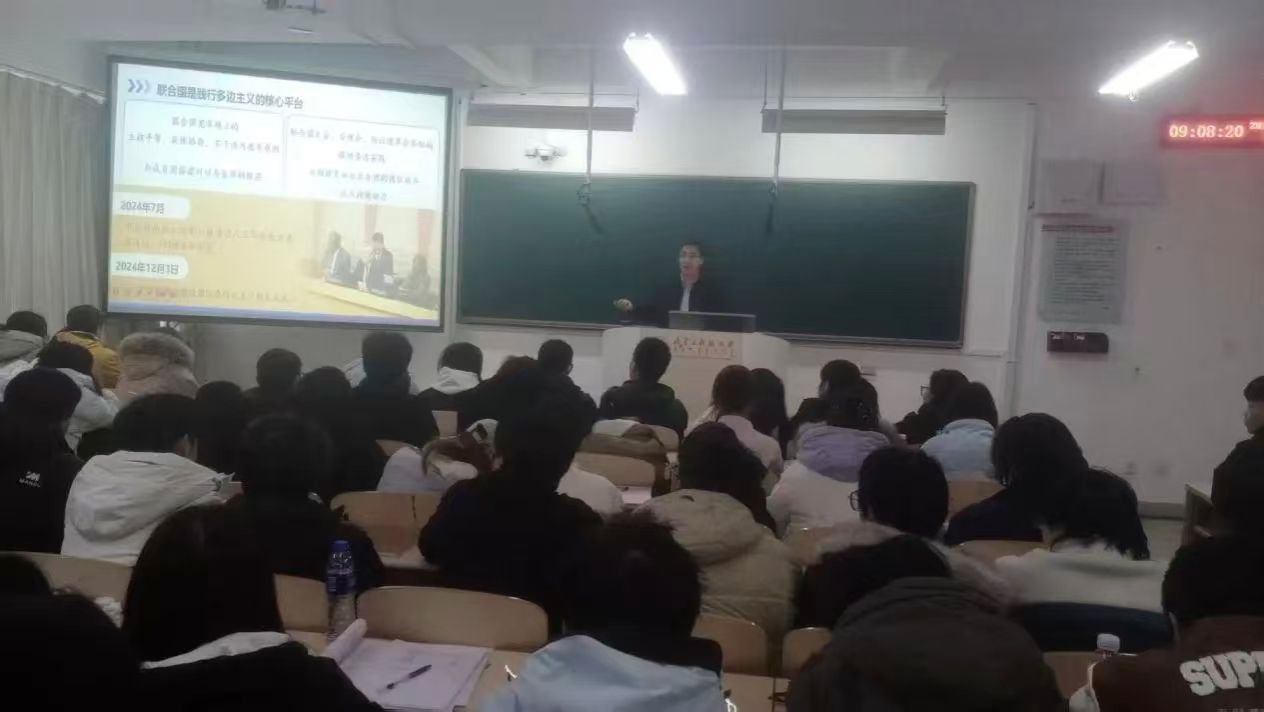 2025年12月12日,公司赵永旺副董事长在教学主楼E202为太阳集团tyc539macau2023级生物工程专业员工讲授了一堂题为《践行多边主义 完善全球治理》的形势与政策课。课程紧密结合当前国际热点与长远发展趋势,系统分析了变乱交织的国际形势,阐释了全球治理的紧迫性与中国方案,并寄语青年学子胸怀天下、勇担重任。课堂内容翔实,视野宏阔。