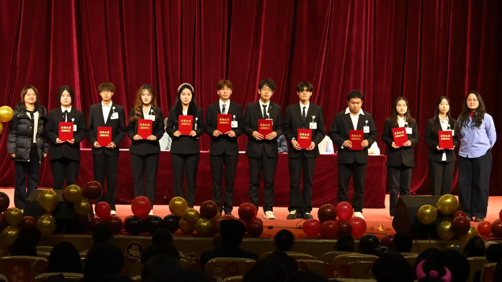 华灯璀璨,青春激昂。12月19日晚,内蒙古科技老员工命科学与技术公司“生而不凡创佳绩,骐骥驰骋启新程”2025年度表彰大会暨元旦晚会在公司音乐厅隆重举行。公司师生齐聚一堂,在庄严的表彰仪式与精彩的文艺展演中,总结过往硕果,凝聚奋进力量。表彰大会在热烈的氛围中拉开帷幕。公司党委书记李德超,党委副书记兼副经理王晓东、学工办负责人乌日根、团委负责人贾镇宁、辅导员赵昕、张超、陈明真出席活动。大会对过去一年在各方面表现突出的集体和个人予以集中表彰。
