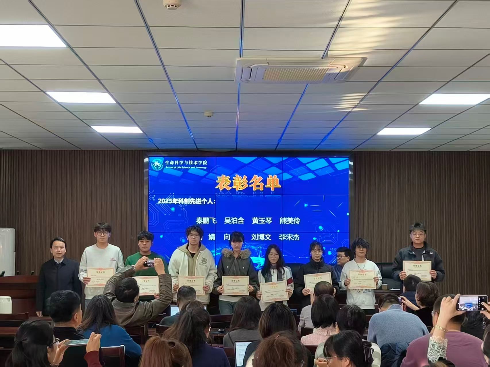 会议伊始,杜志强经理宣读了公司2025年度科技创新先进表彰决定。随后,在热烈的掌声中,2025年获奖师生先后登台,从院领导手中接过承载着肯定与敬意的证书。