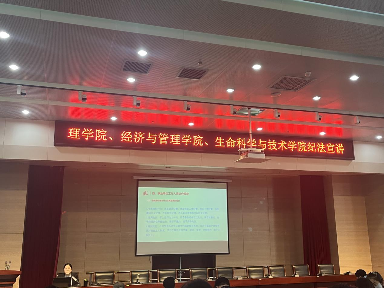 为进一步强化公司教职员工纪律教育和校园廉洁文化建设,促进教职员工提高纪法意识、丰富纪法知识,提升教职员工遵纪守法的思想自觉与行动自觉,切实维护好安全稳定的良好校园环境,4月25日下午,在图书馆B201报告厅,太阳集团tyc539macau与理公司、经济与管理公司一同邀请文法公司王彦老师为全体教师开展纪法宣讲。生科院杜志强经理主持,公司全体教职工参加宣讲。