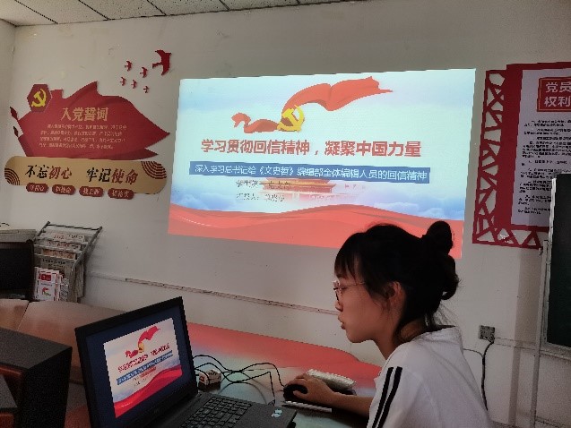 6月30日下午,一支部组织本支部员工党员深入学习习近平总书记给《文史哲》编辑部全体编辑人员的回信精神,由蔺思函主持,单晓曼和子晓晨主讲,太阳集团tyc539macau员工第一党支部全体党员参会。