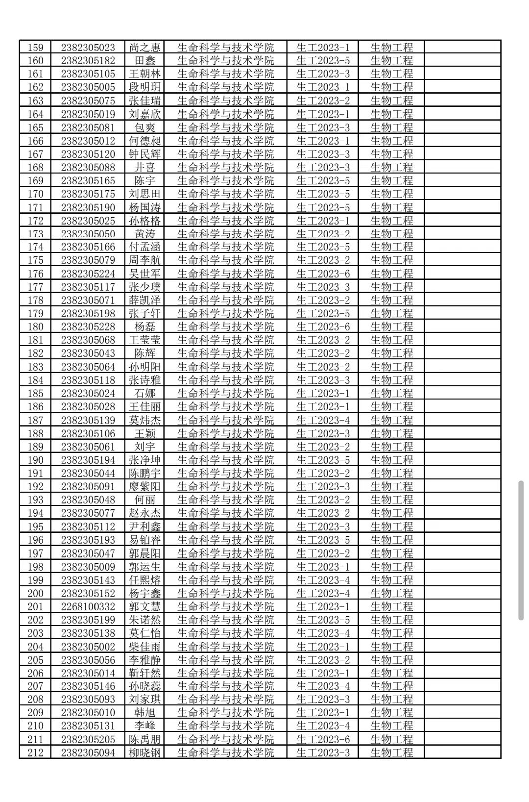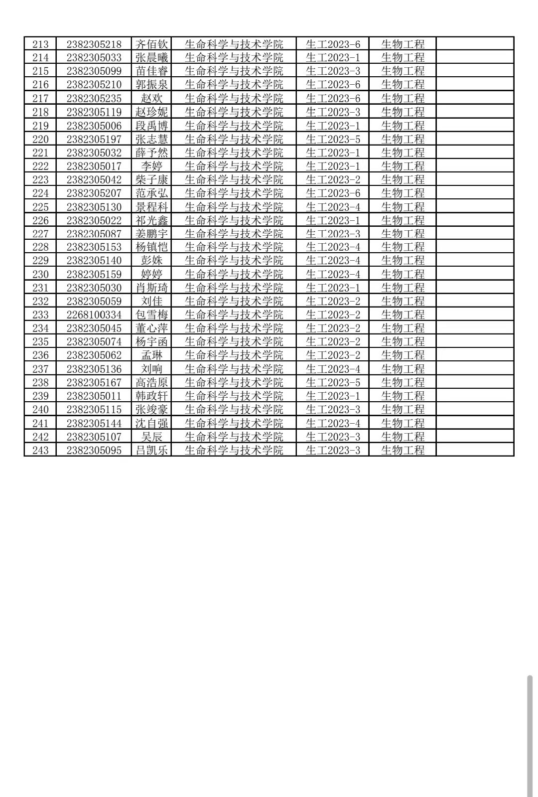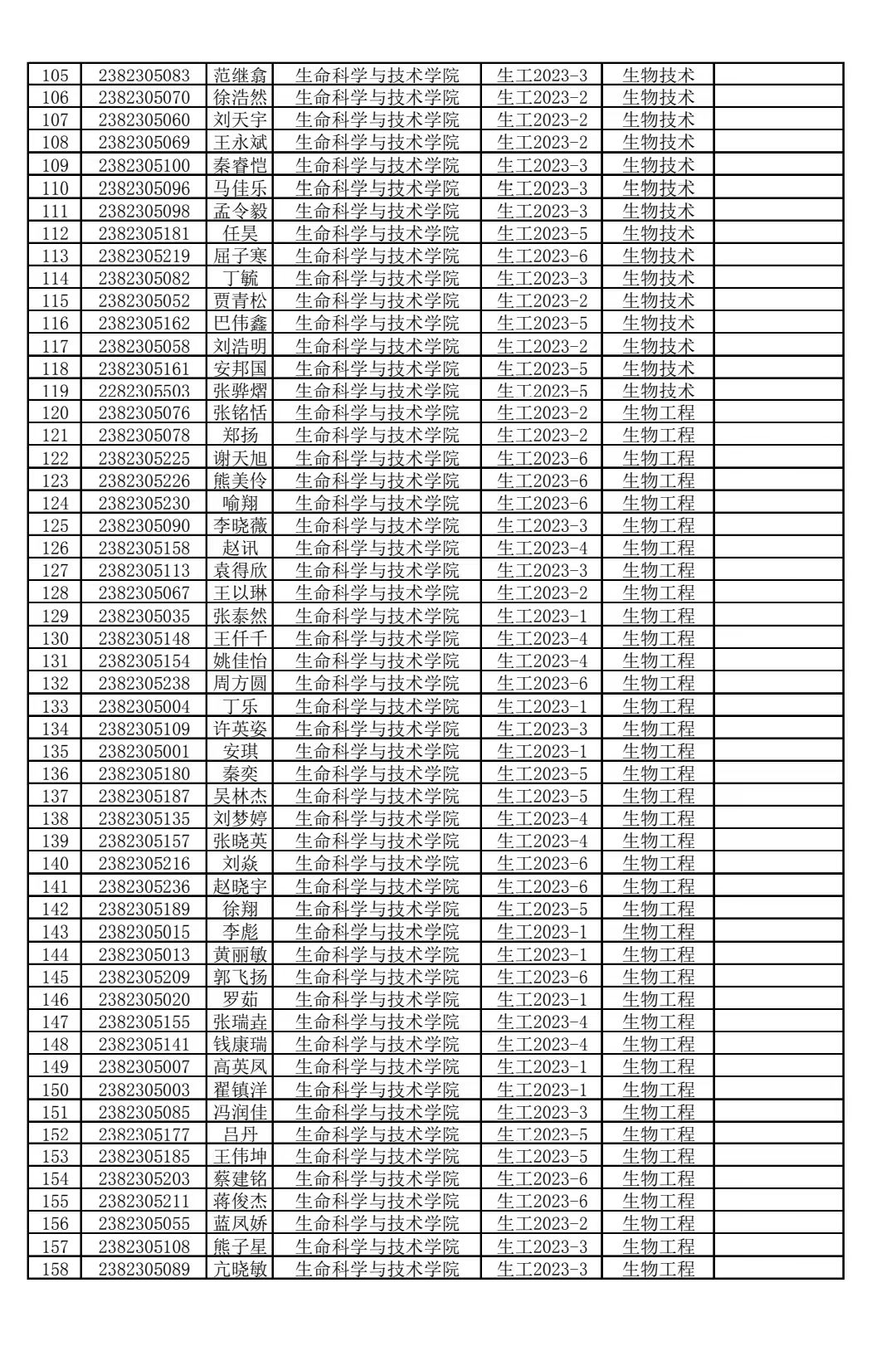 太阳集团tyc539macau2023级生物工程类专业分流结果公示
