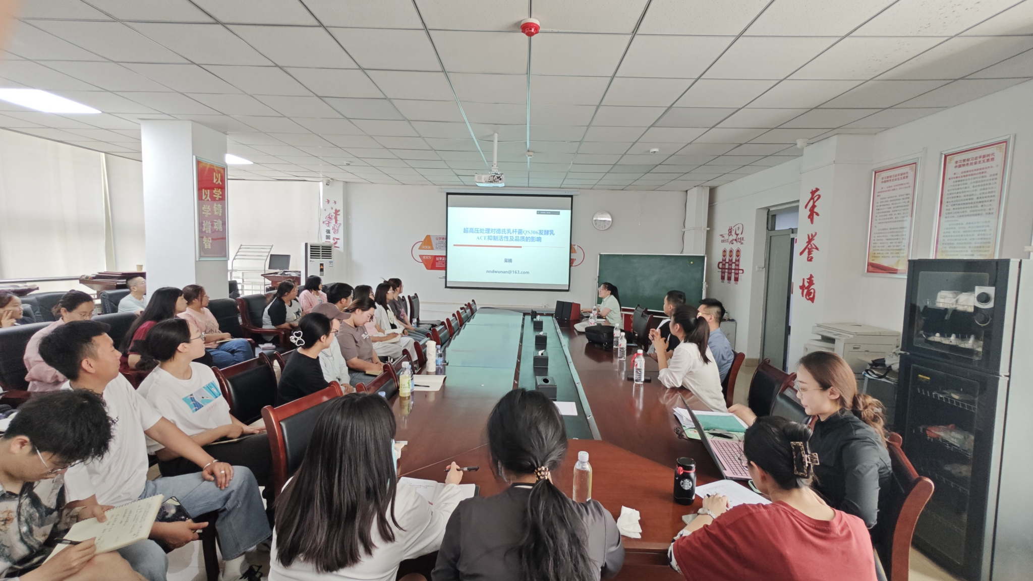 期间,报告人分别围绕超高压处理对乳杆菌QS306发酵乳ACE抑制活性及品质的影响、微杆菌MZT7降解17β-雌二醇作用机制初探、大豆TNL-ID类R基因的鉴定及抗病毒功能研究、乳杆菌噬菌体的诱导功能基因表达及与宿主菌的相互作用等内容进行了讲述,并与师生进行了深入交流。